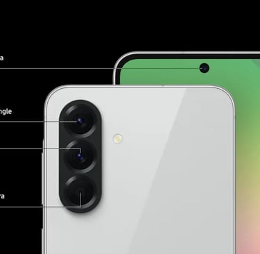 A Samsung manteve o design minimalista com as câmeras alinhadas verticalmente e um acabamento em vidro Gorilla Glass Victus+ na traseira, garantindo mais resistência a quedas e arranhões. Além disso, o frame metálico reforça a construção do aparelho, deixando-o mais premium dentro da categoria intermediária.
